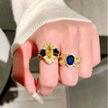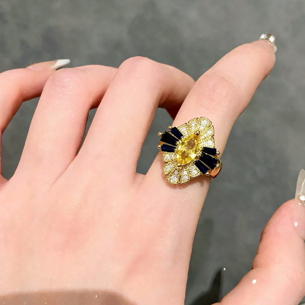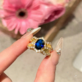 Deerora 18K Gold-Plated Madagascar Sapphire & CZ Crown Ring